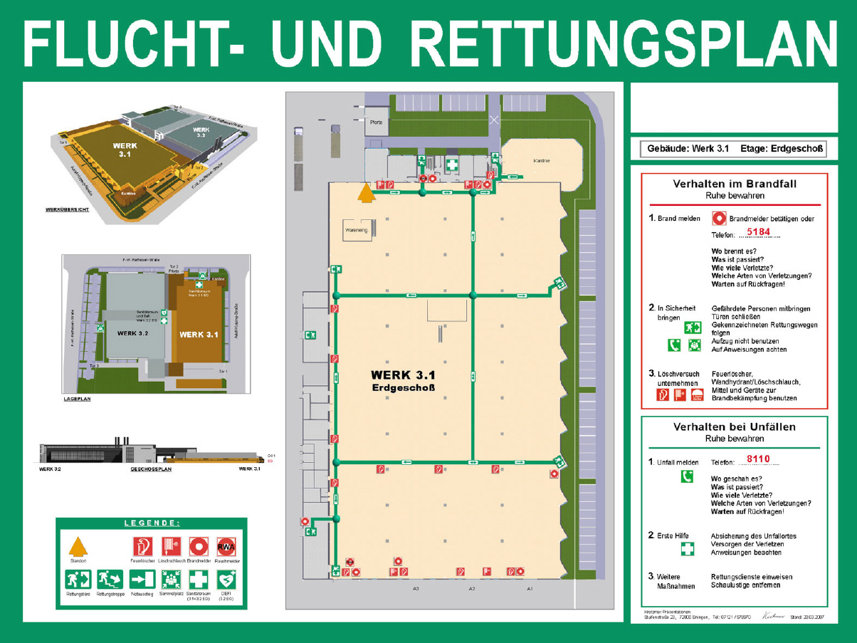 - Firmenpräsentation, Flucht- und Rettungspläne