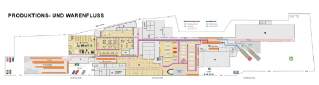 Produktions- und Warenfluss mit Fertigungsstationen  |